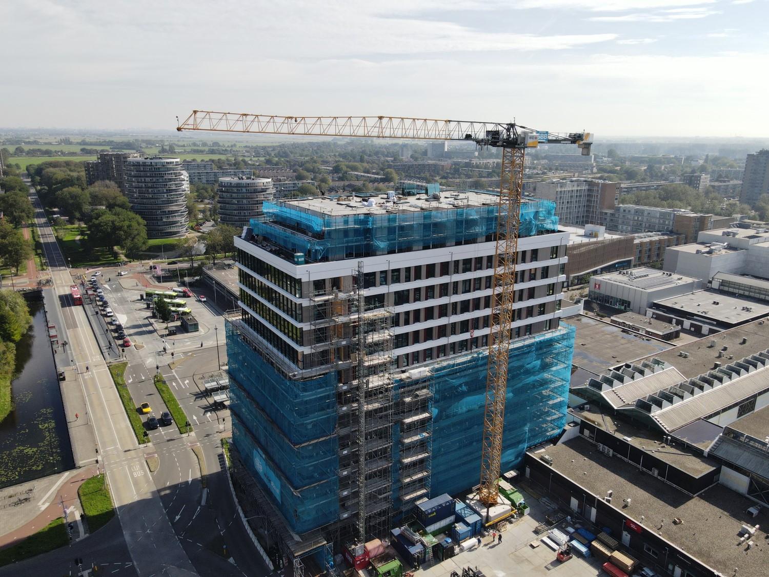 In het voormalige VNU-gebouw in Haarlem zijn 149 appartementen en 13 optopwoningen gerealiseerd. Het kantoorcomplex is daarvoor gestript tot op het betoncasco. De mogelijkheden van het bestaande casco zijn maximaal benut, onder meer voor het ophangen van balkons aan de uitkragende vloeren.