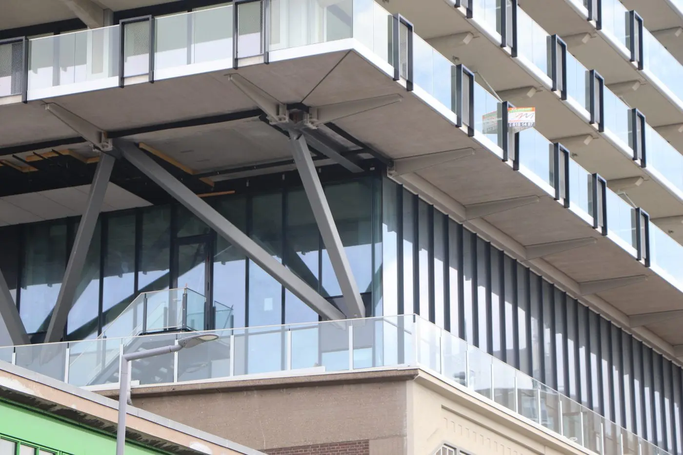 Voor de optopping van de Fenixloods in Rotterdam ontwierp Mei architects and planners een stalen overgangsconstructie. De vakwerken hiervan blijven zichtbaar in de ‘incisielaag’. Om de stalen consoles voor de balkons aan het stalen vakwerk te bevestigen is gekozen voor Schöck Isokorf® verankeringen.