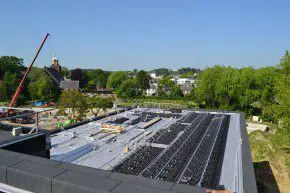 Op het dak van het in aanbouw zijnde zorgplein Sanoforum in Brunssum wordt momenteel een uniek dak gemaakt. Het dak kan enorm veel water bufferen alsook energie opwekken.
