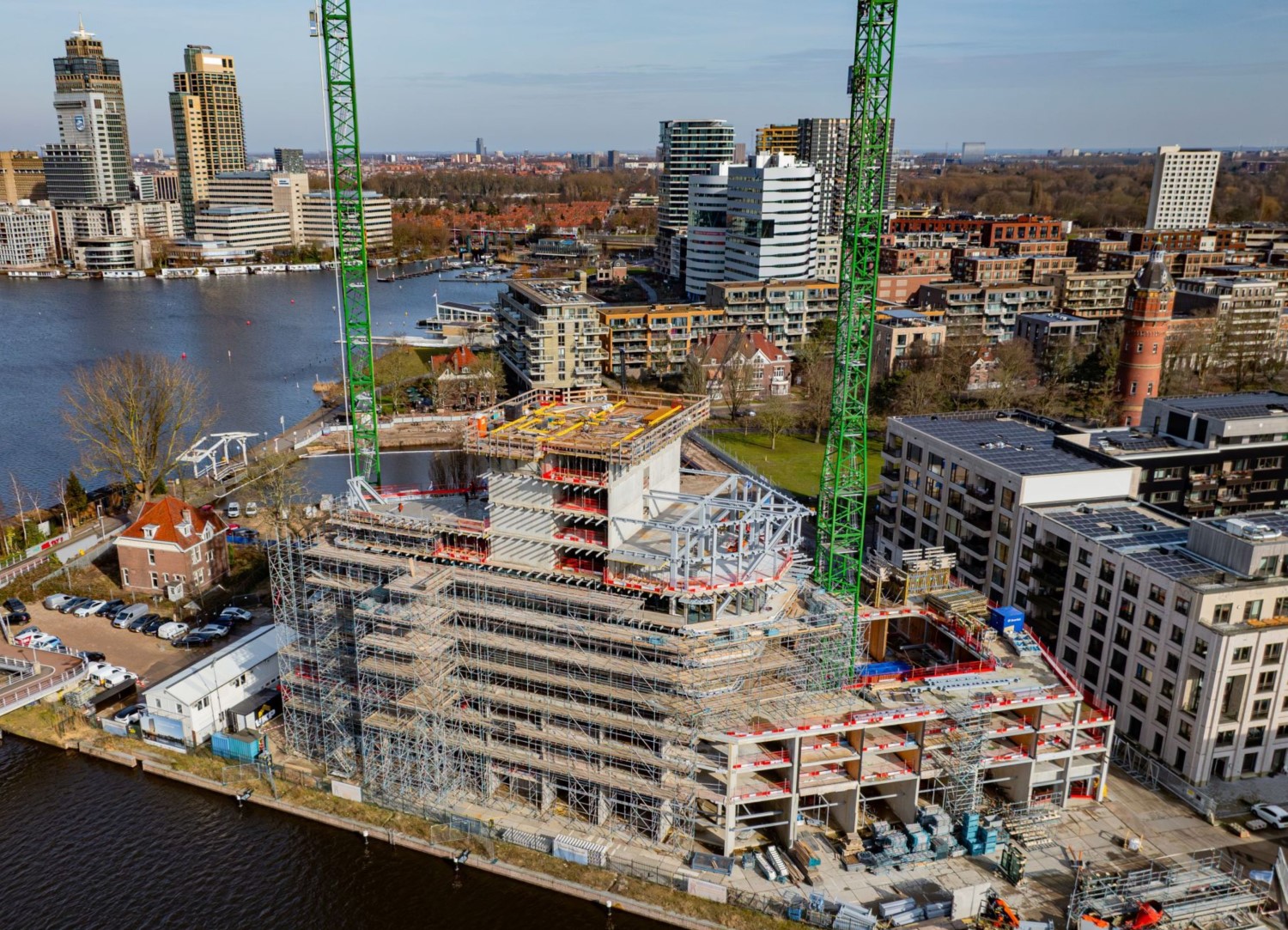Elements. Niet voor niets wordt de woontoren in aanbouw in het Amsterdamse Amstel kwartier zo genoemd. Het 70 meter hoge gebouw in de vorm van een wiebertje (het platte salmiaksnoepje) is geschapen met natuurelementen als uitgangspunt: zon, wind, water en groen. Ter verduurzaming zijn in het parametrisch 3D-model een energieleverend gebouw en 50 procent CO2-reductie als doelstellingen opgenomen. Een integraal datagedreven ontwerpproces leidt tot een sculpturaal gebouw met enkele constructieve hoogstandjes.