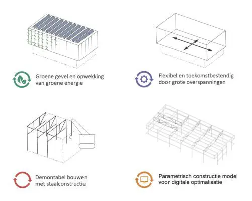 Bij de bouw van Echo is veel aandacht besteed aan het gebruik van materialen die zo min mogelijk impact op het klimaat hebben. Ook is het gebouw zoveel mogelijk ontworpen volgens de principes van circulariteit. Door grote portaalconstructies te gebruiken, lopen de kolommen zoveel mogelijk langs de rand van het gebouw. De stalen spanten hebben standaard maten en kunnen in de toekomst ergens anders opnieuw worden gebruikt. Hetzelfde geldt voor de holle-kern-platen.