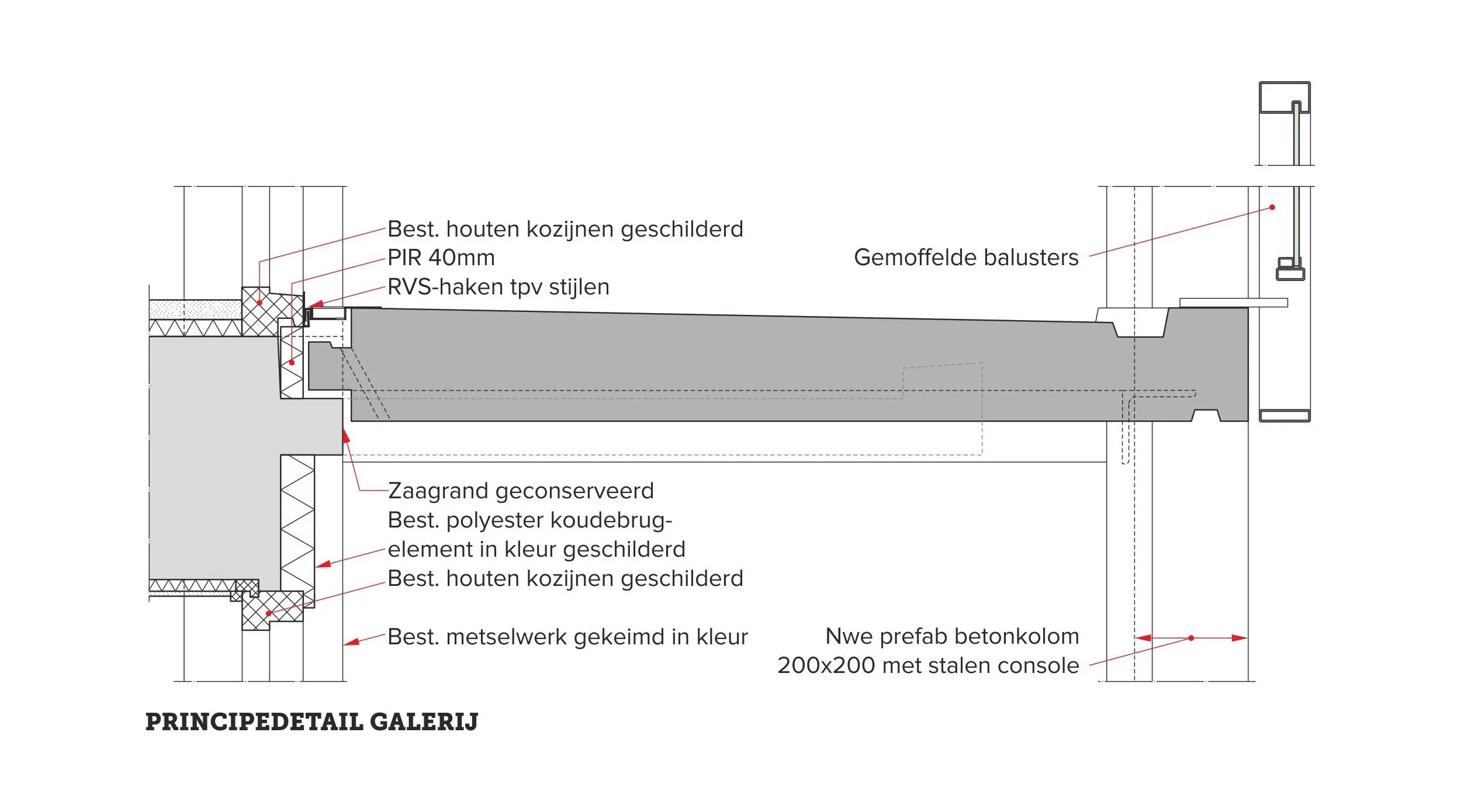 De Margrietflat in Rotterdam heeft een uitgekiende prefab betonnen voorbouw gekregen met nieuwe balkons. De voorbouw bestaat in principe uit T-elementen ter plaatse van de woningscheidende wanden. Op nokken aan de T-elementen worden de balkonplaten opgelegd. Hiermee worden balkons gecreëerd van ongeveer 2,5 x 6 meter, waar de oude flats slechts een doorlopend zeembalkon hadden en een heel beperkte loggia. Het oude zeembalkon is hiervoor weggezaagd en de loggia is bij de woning getrokken. De keuze voor de T-elementen is ingegeven door het feit dat hiermee de fundering kan bestaan uit slechts één paal op een afstand van 1,2 meter uit het bestaande gebouw. De voorbouw steunt alleen horizontaal af op het bestaande casco.