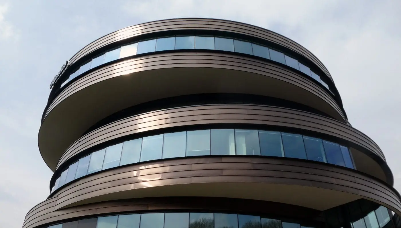 Bij Appèl en Markies Catering slingeren ronde verdiepingen alle kanten op. Het elektrolytisch gekleurde rvs accentueert dit dynamische effect. Het lastigste detail: de ontmoeting van de daktrim en de felsnaad waar de cirkels elkaar raken.