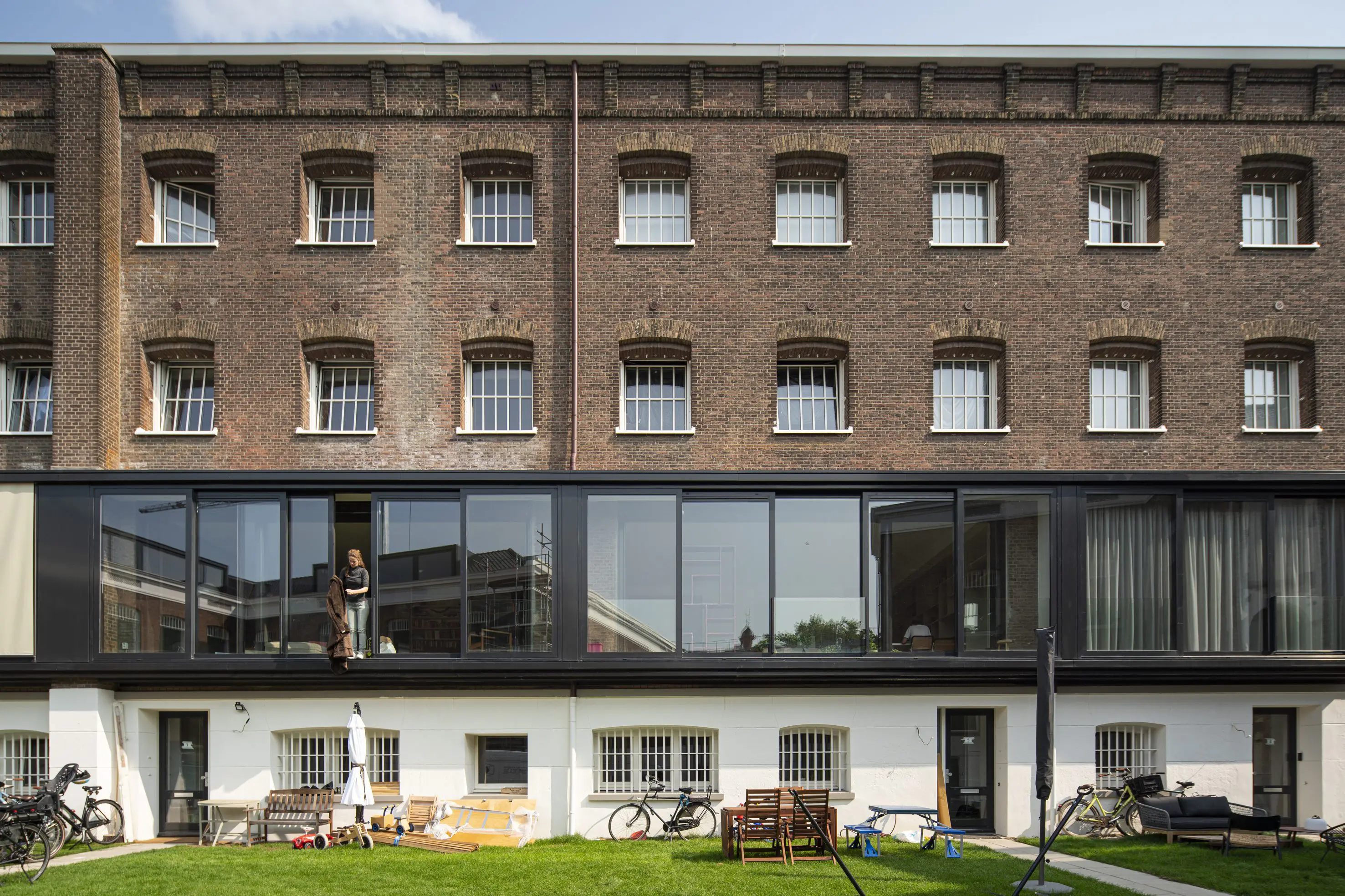 De voormalige gevangenis in het Oude Noorden van Rotterdam is getransformeerd tot nieuw woonpark met behoud van zoveel mogelijk gebouwen. Onlangs publiceerden we uitgebreid over het totale project in het magazine Bouwwereld 3 2021. Dit artikel focust op een bijzondere ingreep: in de drie hoge cellenvleugels zijn nieuwe erkers aangebracht met grote schuifvensters op de woonverdieping.