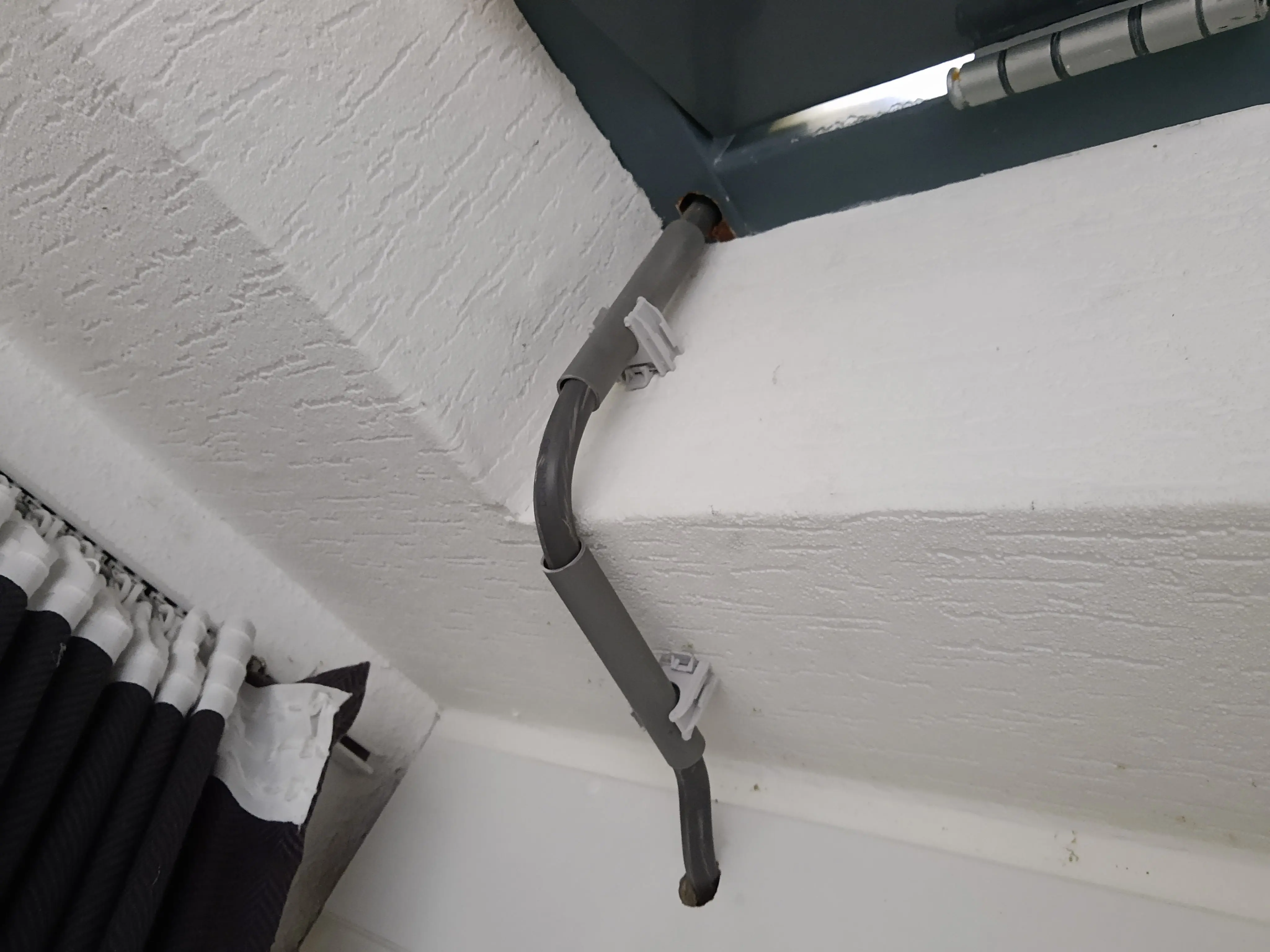 De AC voedingskabel naar de pv-omvormer is door het kozijn van de voordeur geboord. Dat terwijl er zelfs een loze buis naar zolder beschikbaar was!