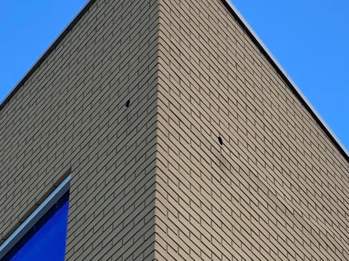 Wanneer vogeltjes al dergelijke “schade” kunnen aanrichten, wat valt er dan op maaiveldhoogte te zien waar de schoolgaande jeugd met handen en voeten, ballen en fietsen de gevel kan teisteren? Is een foute materiaalkeuze een bouwfout of een blunder?