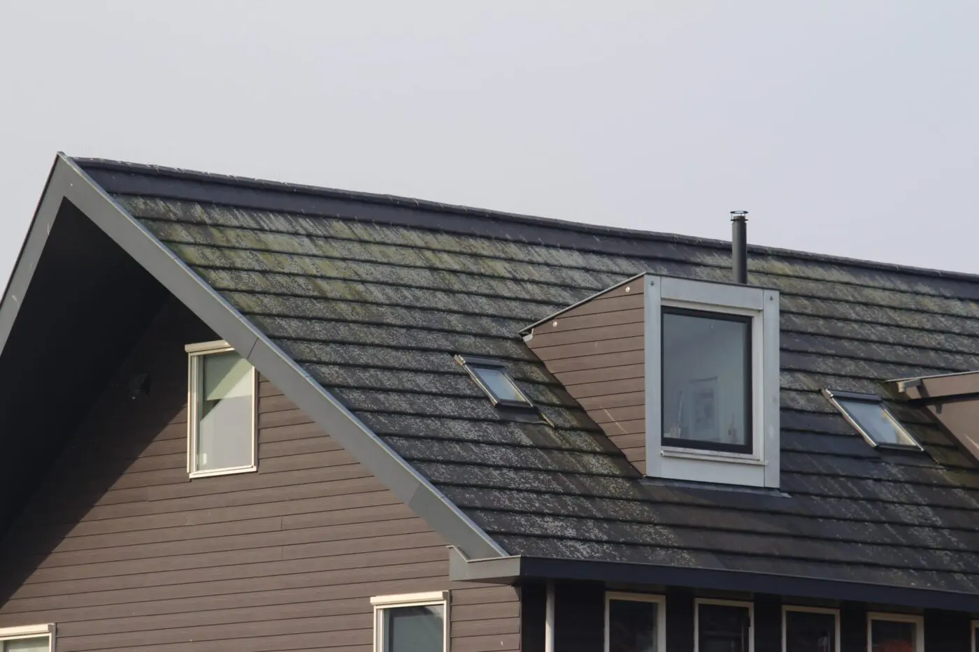 De vervuiling op de shingles zorgt bepaald niet voor een fraai gezicht. En helaas is het geen plaatselijk probleem; alle woningen in het rijtje hebben er last van. Volgens het BDA Dakboekje is de vervuiling het gevolg van het steeds schoner wordende milieu, waardoor algen en mossen beter kunnen groeien. De vervuiling kan worden bestreden door het indekken van een koperen strip onder de nokafwerking of door bitumen leien met koperhoudend of algwerend granulaat te gebruiken. Of die maatregelen hier getroffen zijn, is niet duidelijk. Wel is duidelijk dat de frequentie van het periodiek reinigend onderhoud omhoog mag.