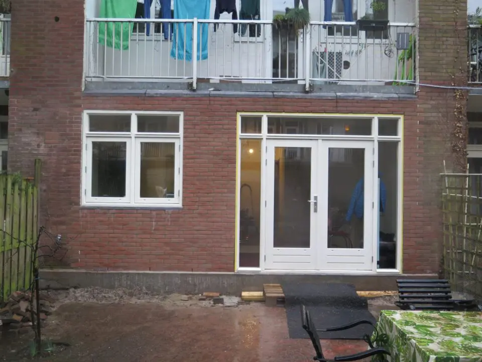 De uitbouw op de begane grond is gecreëerd door de van oorsprong inspringende gevel naar voren te trekken. Dat is alleen niet zo heel netjes gedaan. Zo zijn de kozijnen niet afgestemd op de lagenmaat van het metselwerk met als gevolg een rollaag van geschifte stenen boven het kozijn. Hierdoor is het maar de vraag hoe lang het duurt voordat die steentjes er uitvallen. Dat het metselwerk rechtstreeks op de kozijnen lijkt te rusten, en niet op lateien, werkt in ieder geval niet in het voordeel. Maar er is meer: het loodwerk ziet er dubieus uit, het balkon zou zomaar eens een koudebrug kunnen zijn en staat die pui nou rechtstreeks op de fundering of is dat toch een cementlaag op het metselwerk?