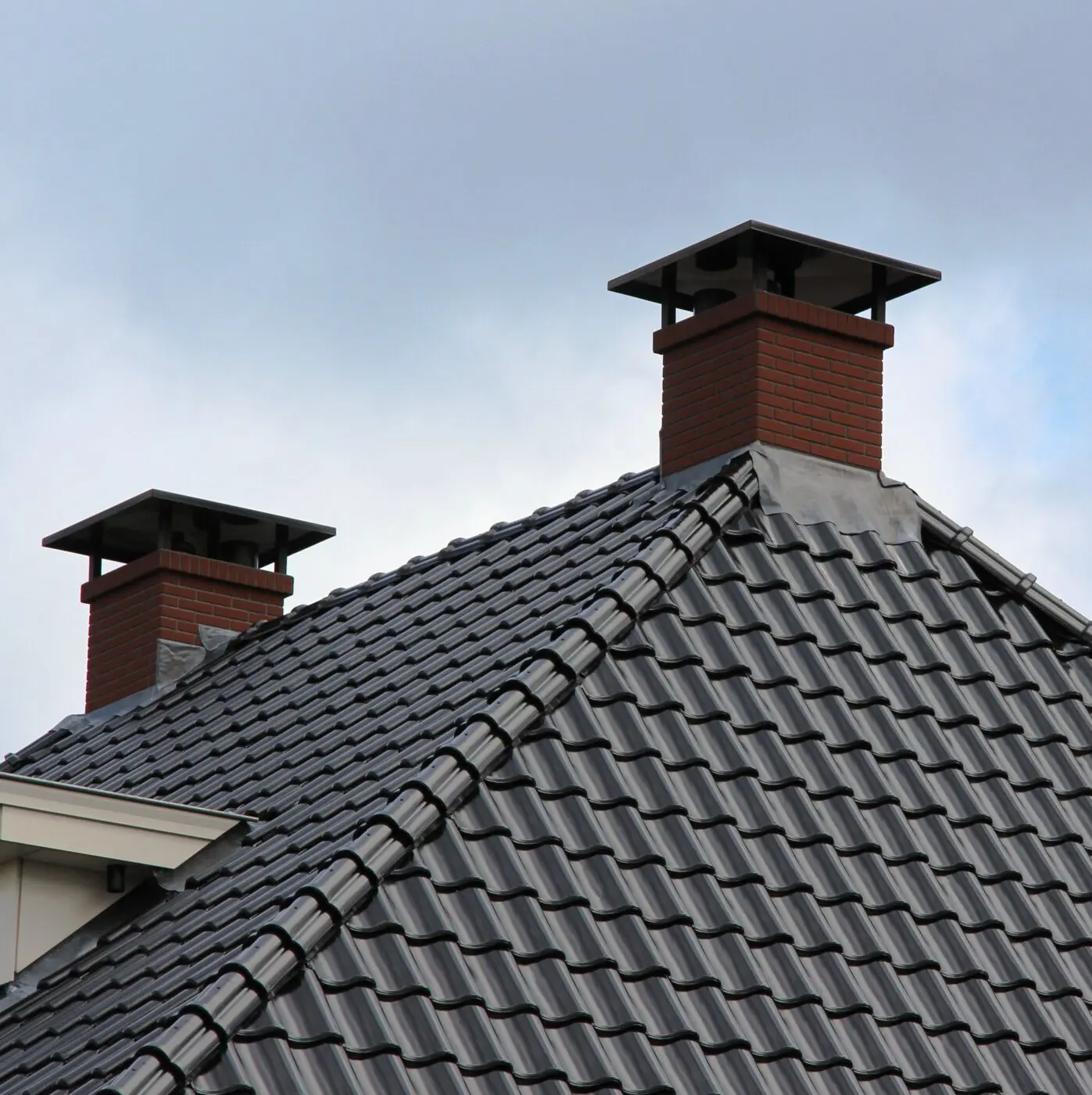 Zuinig met lood moet de fabrikant van deze schoorstenen hebben gedacht. Behalve aan de kopgevelzijde is het lood overal minimaal en maar krap aan dekkend.