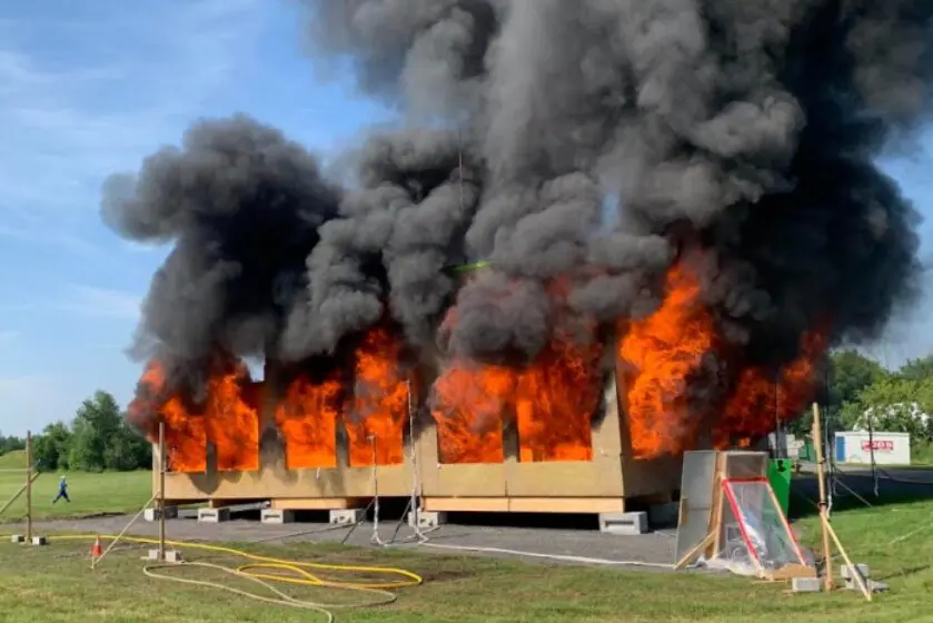 De eerste van vijf brandtesten in houten gebouwen laat zien dat CLT en glulam bestand is tegen een uitslaande brand, zelfs als de sprinkler niet werkt. De brandtest is uitgevoerd door de Canadian Wood Council in een op ware grootte nagebouwd kantoor. De overige brandtesten worden de komende maanden uitgevoerd.
