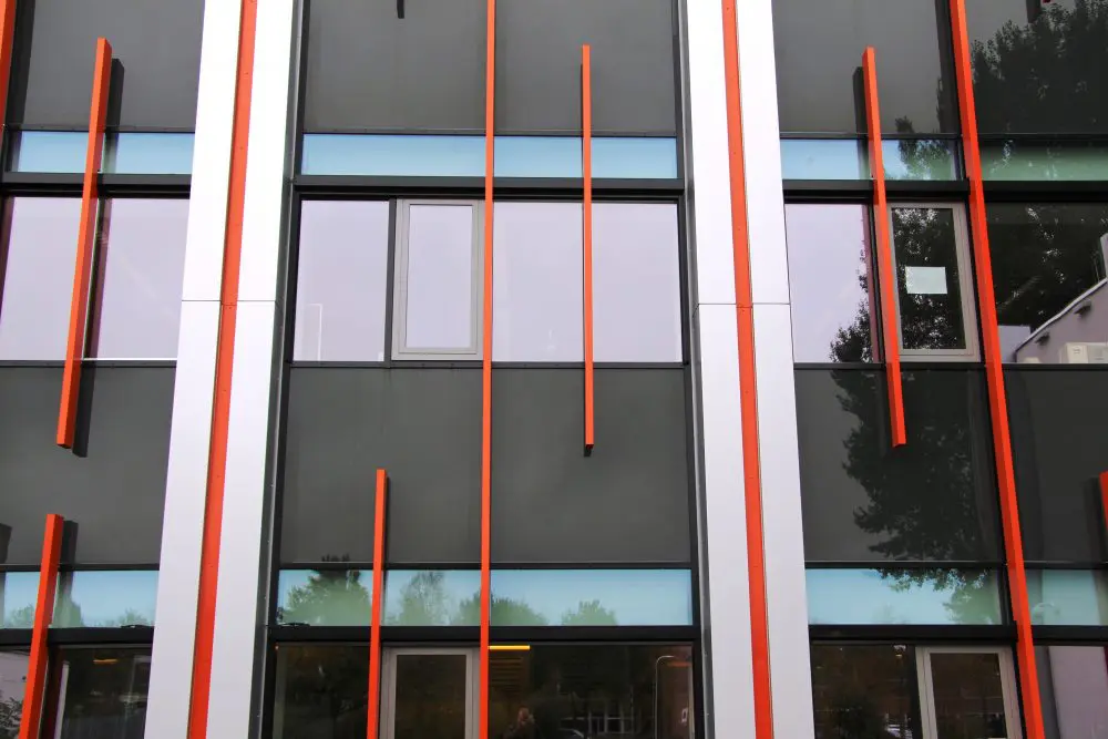 In het ontwerp van Kristinsson hoefde zelfs de gevel niet te worden gesloopt. Alleen de horizontale raamstrook is verwijderd en aan de buitenzijde is een nieuwe vliesgevel geplaatst, die bevestigd is aan de doorgestorte vloerranden. Deze nieuwe gevel vormt uiteraard de thermische scheiding en ook de luchtdichting. Doordat de gevel voor de bestaande gevel wordt geplaatst, kon deze worden opgebouwd met relatief weinig overlast voor de studenten. Het gebouw bleef tijdens de verbouwing zoveel mogelijk in gebruik.