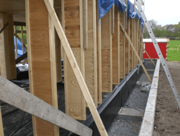 Bouwgroep Hamer bouwt in Gaanderen een bed & breakfast, waarvan de wanden zijn opgebouwd uit hsb-elementen van inlands larikshout en gevuld met roggestro. Om het stro goed in te klemmen, wordt gebruik gemaakt van kippengaas.