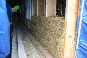 Bouwgroep Hamer bouwt in Gaanderen een bed & breakfast, waarvan de wanden zijn opgebouwd uit hsb-elementen van inlands larikshout en gevuld met roggestro. Om het stro goed in te klemmen, wordt gebruik gemaakt van kippengaas.