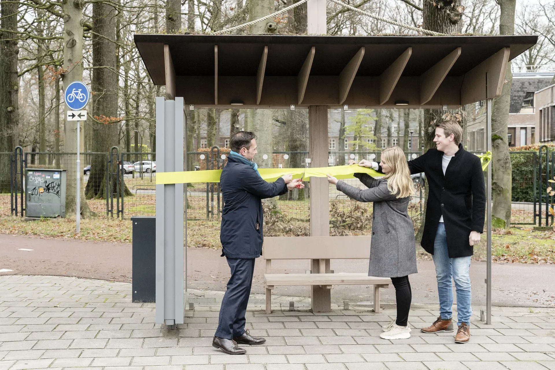 Het bushokje staat in de Bilt, halte Houdringe. Gemeente De Bilt is enthousiast over deze innovatie en maakte de plaatsing op deze plek mogelijk. Burgemeester Potters over het initiatief: “Naast dit circulaire bushokje gaan we ook duurzame lantaarnpalen plaatsen langs een fietspad in onze gemeente. Met dit soort voorbeelden hopen we ook ondernemers en inwoners te inspireren om een bijdrage te leveren aan een duurzame toekomst.”
