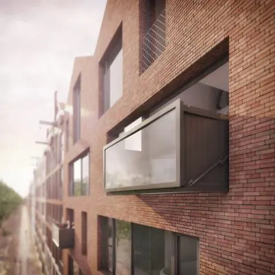 Michiel Hofman van HofmanDujardin vindt dat loggia’s vaak donkere, moeilijk te isoleren inpandige ruimtes zijn die de achterliggende (woon-)ruimte onnodig verkleinen. Maar zijn belangrijkste bezwaar tegen de inpandige balkons is dat je door toepassing ervan het sociale contact met de straat kwijtraakt. Een loggia, meent Hofman, wordt in de praktijk vaak weinig gebruikt en dus woont een bewoner verder terug van de gevel  waardoor er nauwelijks een relatie met de straat meer is. Hij begon – met de laadklep van een trailer in gedachten – al schetsend te bedenken hoe een gevel op een veel innovatievere manier te gebruiken is.