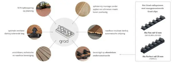 Bij het bekleden van een gevel in thermisch essen biedt de toepassing van het Grad-systeem een meerwaarde. Dit onzichtbare bevestigingssysteem gaat samen met de QuickClip-profielen van Carpentier en zorgt ervoor dat de vakman meteen aan de slag kan. De clips worden vooraf op de juiste afstand op de onderconstructie gemonteerd. De houten planken hoeven daarna alleen nog vast geklikt te worden op de aluminium onderconstructie. Dit levert tijdwinst en kostenbesparing op. En bovenal: dankzij dit systeem kan een gevelbekleding eenvoudig verwijderd worden en is en deze daarna 100 procent herbruikbaar.