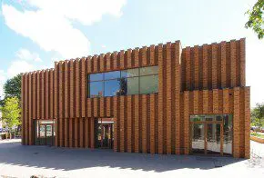 Het gemetselde geribbelde plafond en de bovenzijde van de negge bij de hoofdentree is uitgevoerd als prefab metselwerk en is, compleet met ribben in de Hagemeistersortering ‘Bonn’, meegestort als latei. De diepe voegen in het prefab element zijn afgevoegd voor een optimaal samenspel van prefab element en metselwerk.