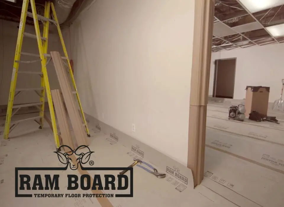 Niet alleen vloeren, maar ook wanden en kozijnen krijgen het tijdens de bouw en afbouw zwaar te verduren. Daar hebben de Amerikaanse ontwikkelaars iets op gevonden. Ram Board bevat over de gehele lengte namelijk vouwlijnen waarmee het afdekmateriaal kan worden voorzien van een haakse plint van 17, 60 of 80 centimeter. Deze voorkomt beschadigingen door rolsteigers, kruiwagens, gereedschapskisten en opspattend cement. Tenslotte zijn er ook Ram Jamb solide klemprofielen voor kozijnen. Net als Ram Board zijn deze gemaakt van 100% recyclebaar karton.