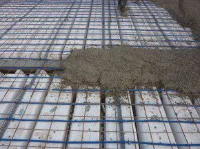 Ook licht en handzaam is de VBI PS-renovatievloer, die sinds halverwege vorig jaar verkrijgbaar is. Het begane grond-vloersysteem van de gelijknamige fabrikant uit Huissen is opgebouwd uit IPE-vormige plaatstalen liggers, met als invulling PS-elementen. Na het neerleggen van krimpnetten, zorgt een 50 mm dikke spramex druklaag voor een constructief sterk geheel. Hieroverheen volgt een zandcement afwerklaag.