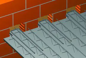 De truc is dat de smalste elementen op een dun laagje egalisatiemortel in bestaande balkinkassingen kunnen worden opgelegd. Eventueel zullen die voorafgaand aan de plaatsing iets meer moeten worden uitgehakt. Vervolgens kunnen de bredere elementen ertussen, dus ‘hangend’ in de dagmaat van de bouwmuren. Na krimpnetten op de ingestorte tralieliggers kan het beton erop, met als uiteindelijk resultaat een minimaal 13 cm dikke verdiepingsvloer, afhankelijk van de te bereiken overspanning.