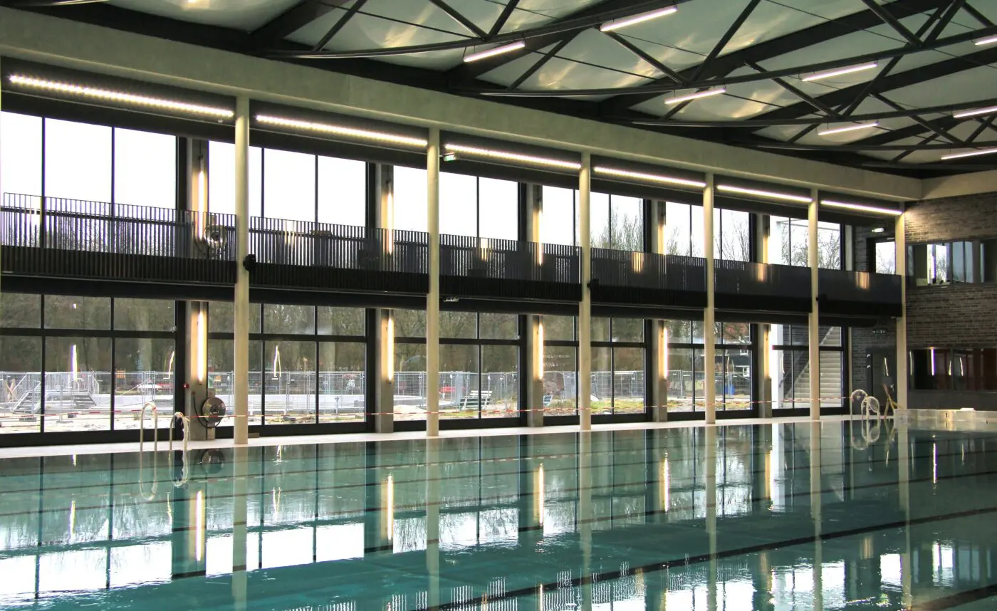 Zwembad Krommerijn in Utrecht is voorzien van een demontabel luchtkussendak dat voldoet aan alle eisen van het Bouwbesluit. Met polyesterwol is een R-waarde van 2,5 gerealiseerd. Er is veel aandacht besteed aan de luchtdichtheid van de randaansluitingen.
