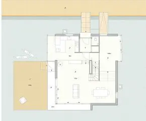 Veel aandacht is besteed om de fietsen binnen de woning te kunnen stallen zodat er geen berging op de steiger gemaakt hoefde te worden. De waterstand kan + of -10 cm wijzigen. Daarom zijn de entrees losgehouden van het gebouw. Ook de nutsaansluiting vereiste een specifieke oplossing. De aansluiting staat op de wal en via flexibele leidingen, onder de entreevlonder door, komen ze de woning in. Daar staat de meterkast en een pompput voor de riolering.
