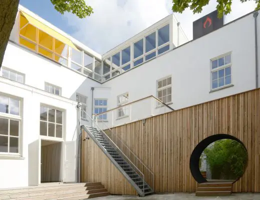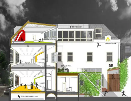 De voormalige Leonardo da Vincischool is getransformeerd tot een brede school met buurtfuncties. Alle nieuw aangebrachte materialen zijn natuurlijk en bio-cyclisch, zoals massief eikenhout en leem. De materialen zijn CO2-neutraal, eenvoudig recyclebaar en sluiten aan op de historische bouwfysica van het pand. Zo veel mogelijk van het materiaal in het gebouw is opnieuw gebruikt. Zo zijn houten traptreden omgedraaid en opgeschuurd, zijn vloerdelen verwerkt tot pantry’s en plafonds tot tuinschutting.