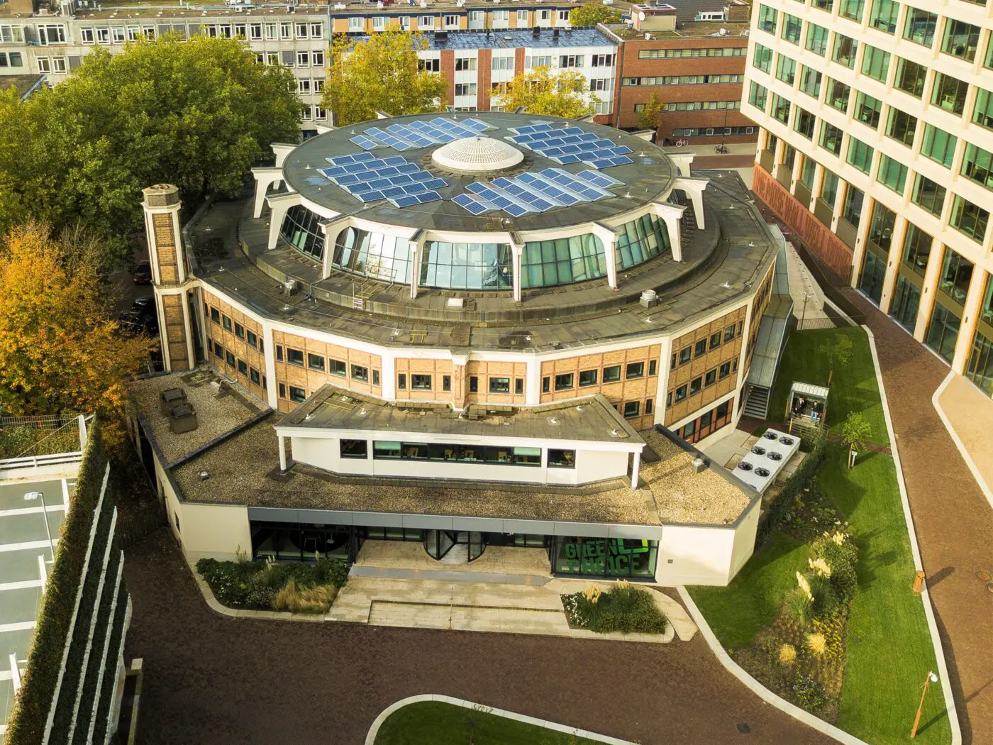 Het voormalige Bouwcentrum is een wederopbouwmonument en mocht aan de buitenzijde weinig worden veranderd. De unieke betonnen draagstructuur levert blijvend veel koudebruggen op. Toch is het Greenchoice gelukt om energielabel A te bereiken.