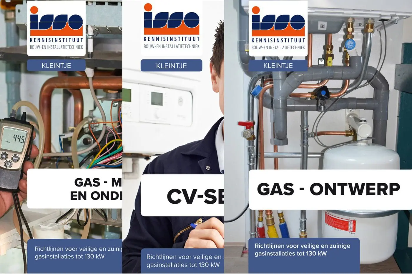 ISSO heeft drie nieuwe kennisdocumenten voor de installateur gepubliceerd. Het betreft de documenten ‘Kleintje Gas – ontwerp’, ‘Kleintje Gas – montage en onderhoud’ en ‘Kleintje cv-service’. Hiermee speelt het in op nieuwe ontwikkelingen, zoals de certificeringsregeling voor gasverbrandingsinstallaties, de Wet Kwaliteitsborging voor het Bouwen en aangepaste richtlijnen voor rookgasafvoer.
