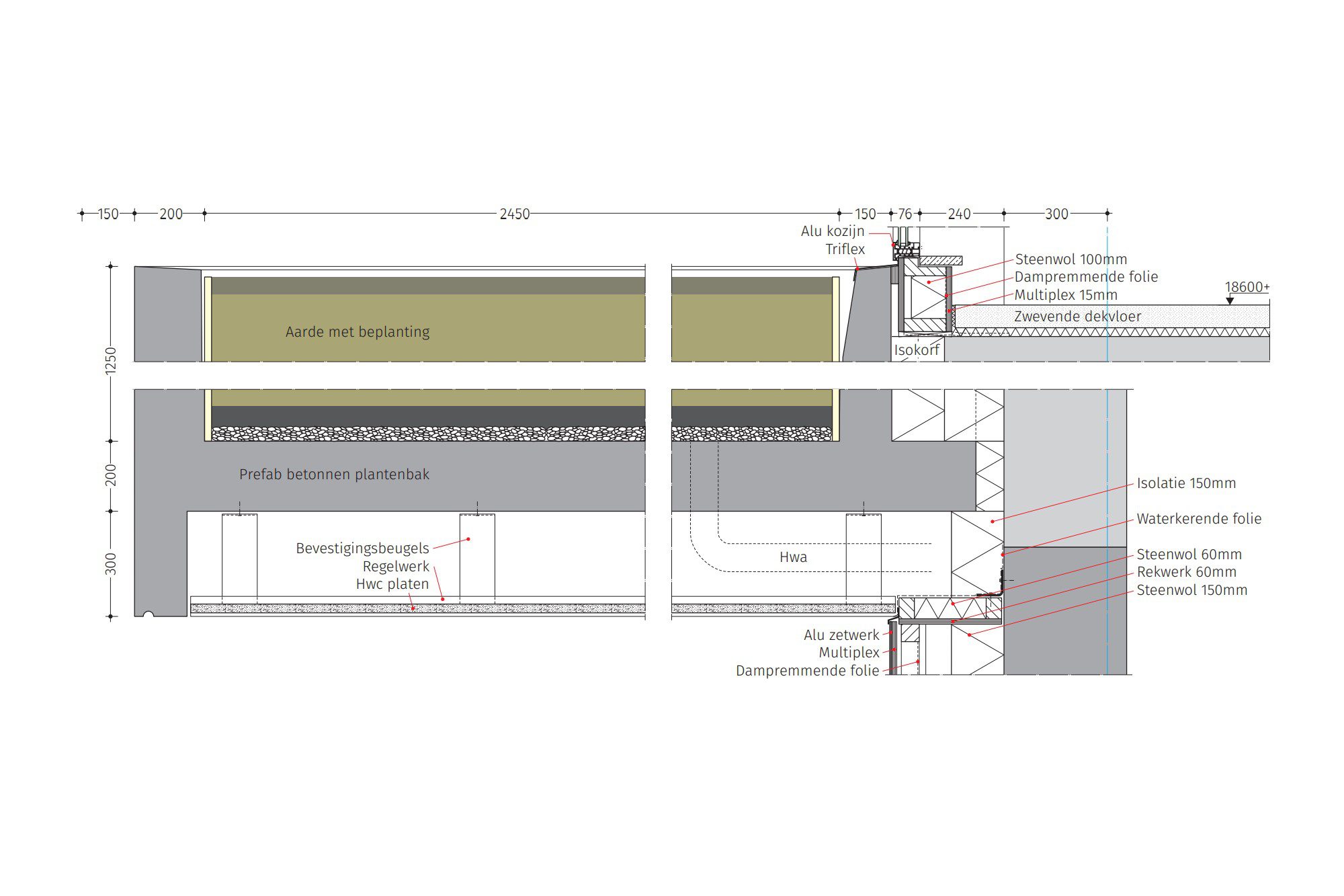 Iedere groenbak weegt samen met de begroeiing en de aarde een paar duizend kilo. Om deze last te kunnen dragen en de krachten te weerstaan is gekozen voor prefab betonnen bakken van Westo Prefab Betonsystemen. Vanwege de zware constructie met de bakken is gekozen voor hogesterktebeton, sterkte klasse C60/75.