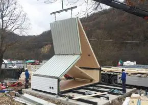 De module wordt geleverd als ‘flatpack’ en kan met behulp van een kraan uitgevouwd worden. Als de basis eenmaal staat, worden de voor- en achtergevels geplaatst. De module is compleet afgewerkt verkrijgbaar, inclusief elektra, water, verwarming en riolering. Hierdoor kan een woning binnen twee dagen bewoonbaar zijn. Eventueel kan de module worden voorzien van zonnepanelen.
