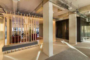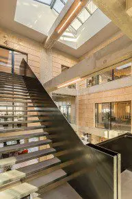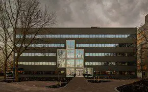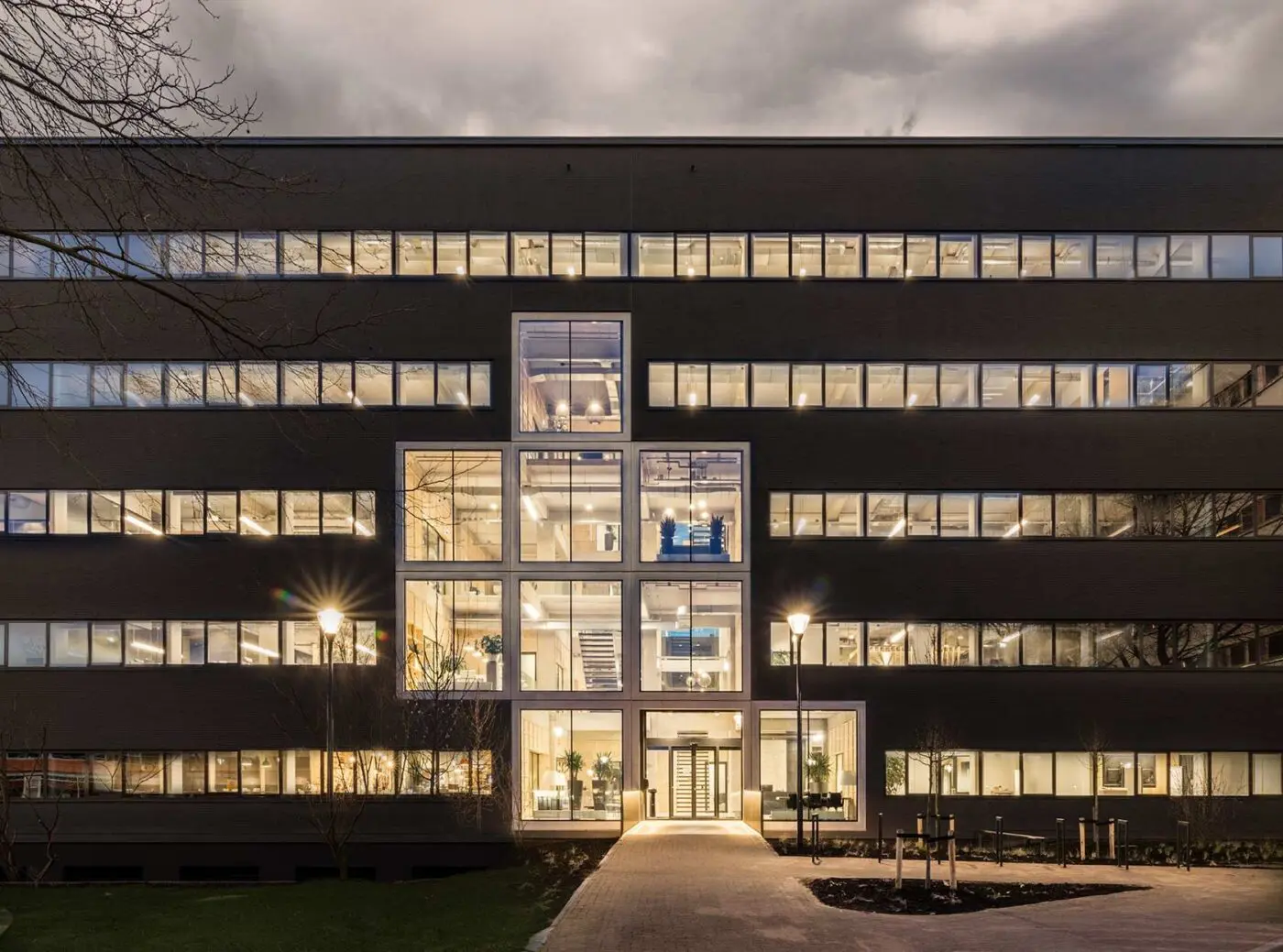 Een jarenzeventiggebouw op het Lucentterrein in Hilversum is getransformeerd tot het nieuwe hoofdkantoor van woningcorporatie de Alliantie. De meest in het oog springende ingreep betreft het verwijderen van een groot aantal vloeren en wanden uit de robuuste betonconstructie. Zo ontstaat een vide van vier verdiepingen, een levendig hart met veel daglicht dat de verschillende afdelingen verbindt.