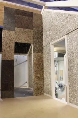 In de installatie zijn toepassingen en materialen van vandaag, morgen en overmorgen verwerkt. Producten die al bestaan maar nog moeilijk hun weg naar de bouwwerf vinden tot ontwikkelingen die nog serieuze steun nodig hebben om te ontwikkelen en op te schalen.