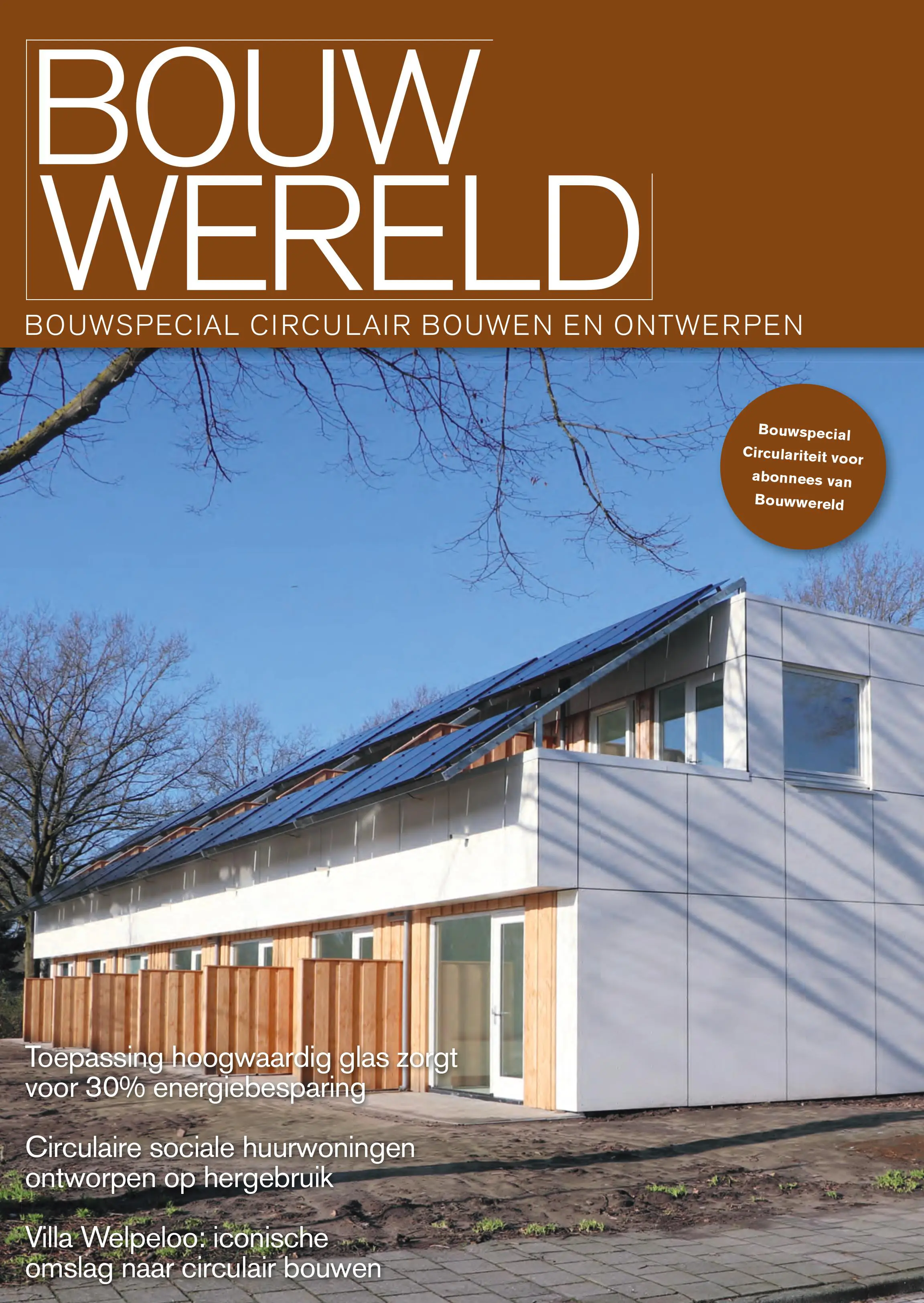 Twaalf jaar geleden werd in Nederland Villa Welpeloo gebouwd: het eerste circulaire woonhuis ontworpen door Jan Jongert van Superuse Studios. Dat was niet eerder vertoond, een huis maken van afvalmaterialen. Het project trok destijds de aandacht van de internationale architectenwereld. Een artikel over de geschiedenis van dit bijzondere project staat verderop in dit blad. Sinds die tijd is er veel gezegd en geschreven over nut en noodzaak van circulair bouwen en ontwerpen, maar is het nog steeds niet in het dagelijkse denken en doen van de bouwsector verankerd. Dat circulair bouwen hard op weg is naar volwassenheid laat de inhoud van deze special zien. Van een vakantiehuisje tot een blokje circulaire sociale huurwoningen en een nieuwe Multi Functionele Accommodatie die de duurzaamheidsambities van de opdrachtgever overtrof; op meerdere plekken in ons land zijn de afgelopen tijd op circulaire leest geschoeide projecten gerealiseerd. Het kan dus wel. ’t Is een kwestie van de knop omzetten en afscheid nemen van lineair denken en doen.