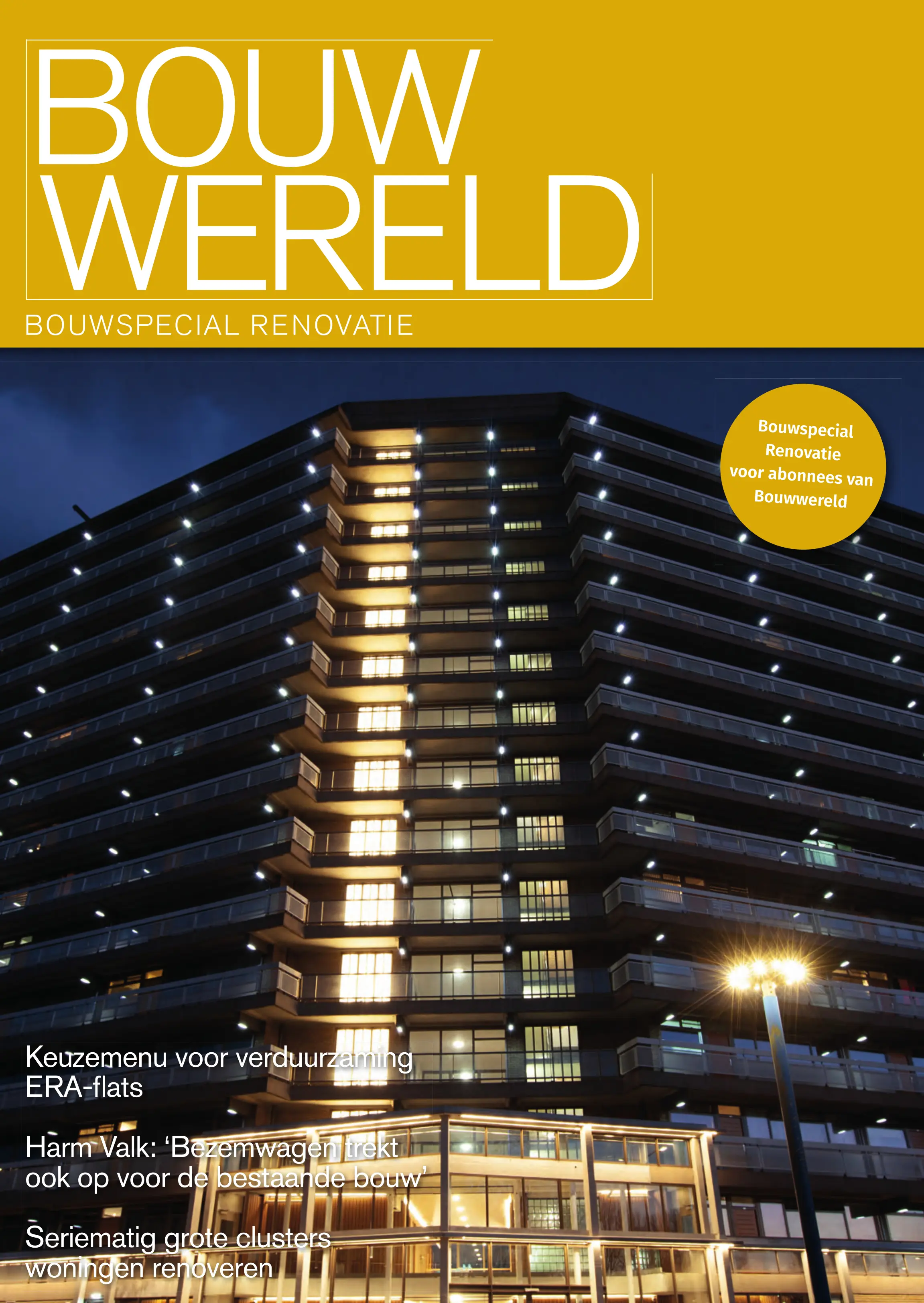 Keuzemenu voor verduurzaming ERA-flats; Inbouw van internationale school in het Zandkasteel;, Harm Valk: “Bezemwagen trekt ook op voor de bestaande bouw”; Boerderij gerestaureerd tot woon- en ontmoetingsplek; Isoleren en renoveren met voorzetramen van Belned; Seriematig grote clusters woningen renoveren; Verduurzaming van een grachtenpand; Woningen en kantoren renoveren met FINEO-vacuümglas.