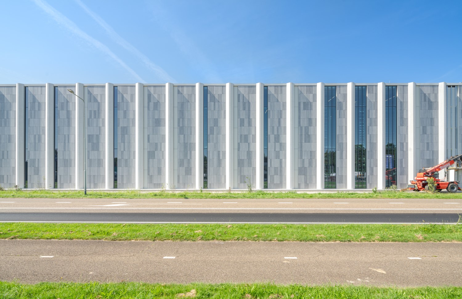 Het businesspark van de Limburgse gemeente Stein oogt als een van de vele inwisselbare bedrijvenparken van Nederland. In deze generieke verzameling kantoorpanden met golfplaatdaken en grauwe betongevels valt één gebouw meteen op: het nieuwe bedrijfsgebouw van Nedlin. Neem alleen al de indrukwekkende lengte van 144 meter en een breedte en hoogte van respectievelijk 75 en 16 meter. De industriële wasserij, een van de modernste van Europa, heeft niettemin een opvallend elegante uitstraling. Want waarom zou een utilitair bedrijfsgebouw niet ook een maatschappelijke bijdrage kunnen leveren, is de retorische vraag van projectarchitect Han Westelaken van Architecten aan de Maas. “Een actuele discussie is hoe we de verdozing van Nederland kunnen tegengaan. We willen met dit gebouw laten zien dat het ook anders kan.”