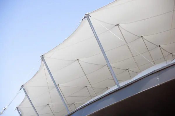 De Shaded Dome, geplaatst op een plint met deuren en ramen, bestaat uit een door luchtdruk gedragen hal, een netwerk van staalkabels en een van high-tech doek gemaakte overkapping met een grote overspanning. De koepel bestaat uit een geïsoleerd binnendoek en een buitendoek, die met afstandhouders van elkaar gescheiden blijven.
