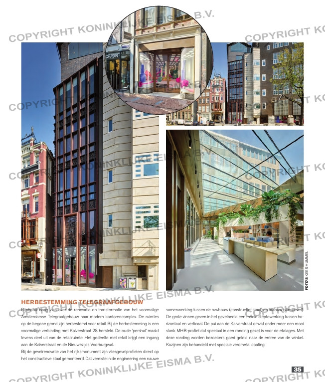rizontaal en verticaal. De pui aan de Kalverstraat omvat onder meer een mooi
