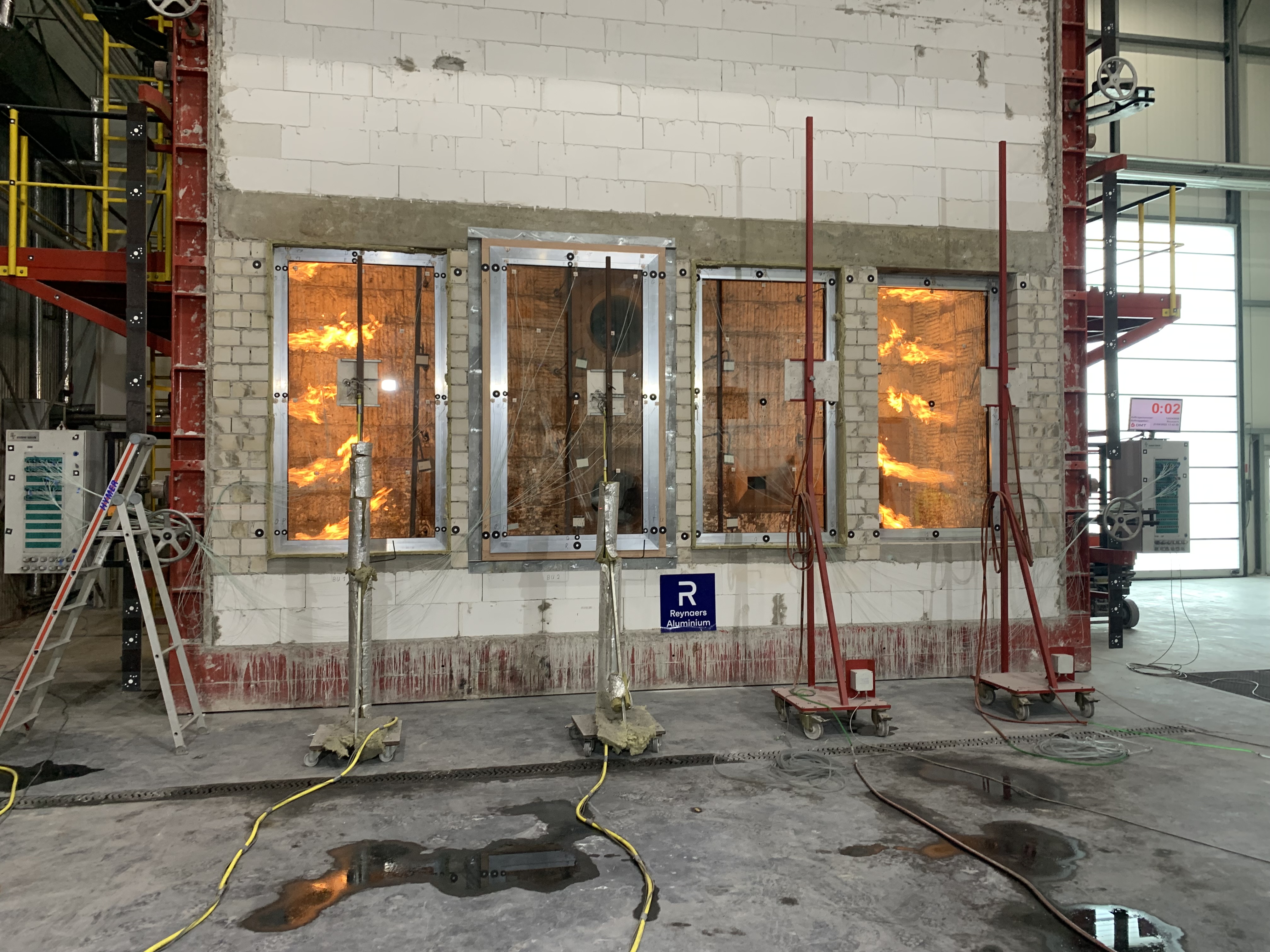De toenemende vraag leidt ertoe dat Reynaers Aluminium zelf ook steeds verder gaat met het certificeren van de brandveiligheid van diverse geveldelen, zoals stolpramen in de verschillende systemen. Maar behalve eigen producten neemt het bedrijf daarin soms ook producten van anderen mee. “We kregen bijvoorbeeld de vraag naar de brandwerendheid van een pui met ventilatieroosters. Die vraag komt vaker voor. Fabrikanten hebben wel eens ventilatieroosters getest in een brandwerende gevel, maar dan in houten of kunststoffen kozijnen. We hebben nu getest in een aluminium gevel en hebben de brandwerendheid aangetoond, zowel van binnen naar buiten als van buiten naar binnen en zowel in een raamvleugel als in vast glas.”
