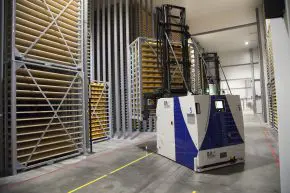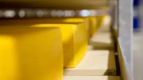 Van geitenkaas tot Edammer kaas en van Mimolette tot Goudse kaas. Per honderden liggen ze opgestapeld in het kaaspakhuis van FrieslandCampina. Het gehele vertrek is volledig geautomatiseerd. Automatisch geleide voertuigen (AGV’s) rijden tussen de stellages en gangen door en bezorgen de kazen op de juiste plek. Van opslag naar transport. De snelroldeuren en de AGV-systeem staan met elkaar in verbinding. Wanneer een AGV nadert, openen en sluiten de deuren zich automatisch. Het gehele proces wordt aangestuurd vanuit een centrale besturingskamer. Naast iedere snelroldeur is een zwarte drukknop geplaatst om de deur in geval van nood automatisch te kunnen openen. De kaasproductie van FrieslandCampina is goed voor 57.000 ton kaas per jaar. Het vernieuwde gedeelte van het kaaspakhuis bevat onder andere een expeditieruimte, kaasbehandellijn en een opslagcapaciteit van 2.100 ton kaas. De verschillende in het pand geïnstalleerde deurtypes hebben een belangrijke rol bij het kwaliteitsbehoud van de kaas.